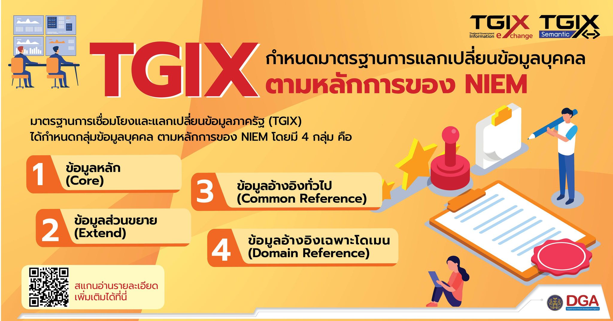 จากนั้น สำนักงานพัฒนารัฐบาลดิจิทัล (องค์การมหาชน) สพร. หรือ DGA จะทำหน้าที่ลงทะเบียน ใช้แบรนด์ TGIX ให้การรับรองมาตรฐานการเชื่อมโยงและแลกเปลี่ยนข้อมูลภาครัฐ โดยหน่วยงานที่สร้างข้อมูลตามเกณฑ์ของ DGA จะได้รับการรับรองมาตรฐานฯ ดังกล่าว ซึ่งจะใช้มาตรการทางการตลาดมาจูงใจให้หน่วยงานต่างๆ ใช้มาตรฐาน TGIX นี้