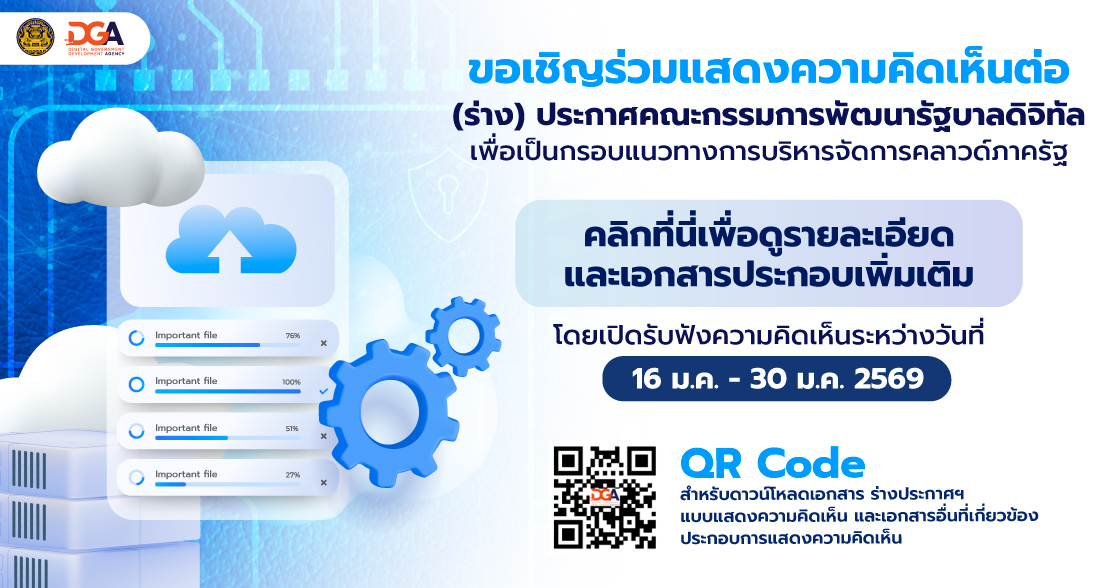 ขอเชิญร่วมแสดงความคิดเห็นต่อ (ร่าง) ประกาศคณะกรรมการพัฒนารัฐบาลดิจิทัล เพื่อเป็นกรอบแนวทางการบริหารจัดการคลาวด์ภาครัฐ